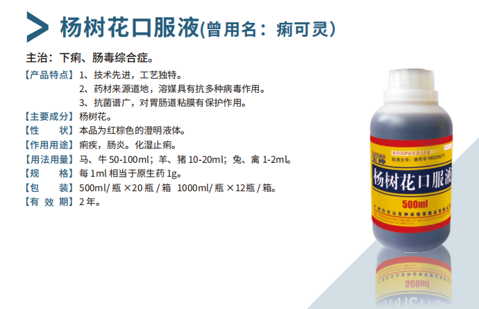 方案3、抗菌。复方阿莫西林100g或10%恩诺沙星100ml十安普霉素100g或者泰灭净100ml十杨树花或白头翁口服液500ml拌料或饮水100kg,连用3-5天。