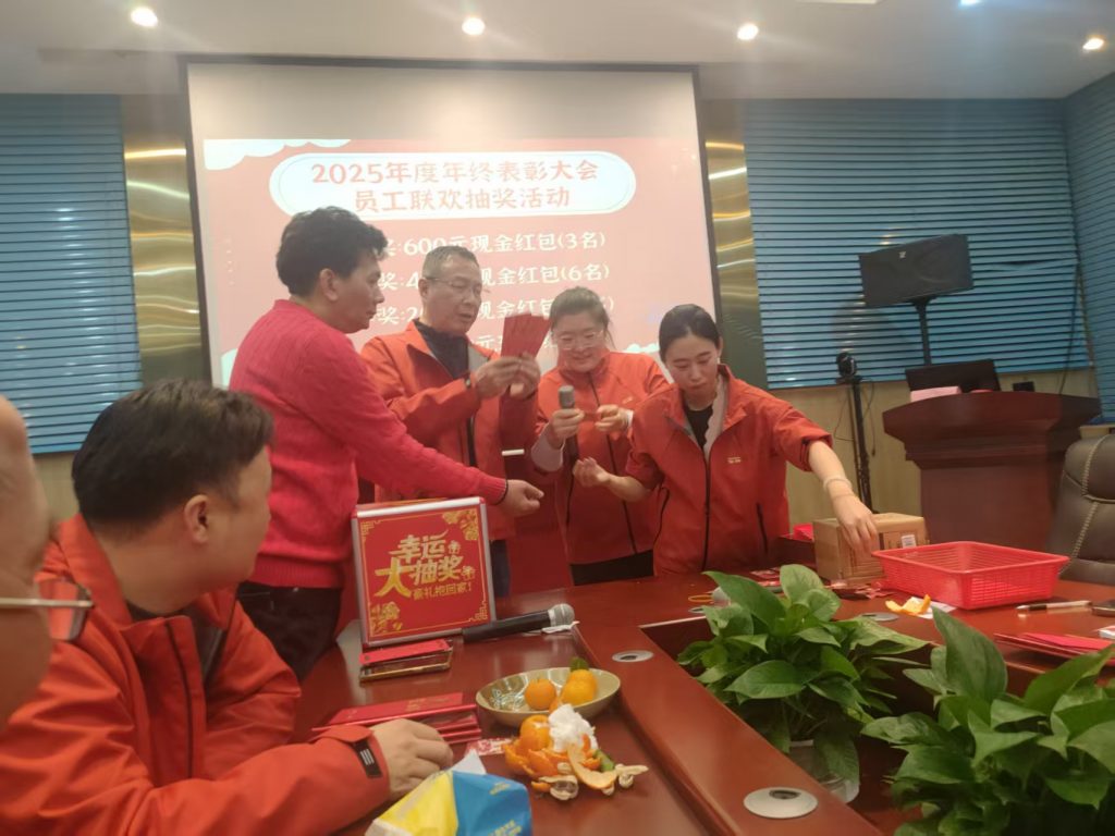 总结讲话结束后,大会进入欢乐的抽奖环节。丰富的奖品、紧张刺激的抽奖流程点燃了全场气氛,现场欢声笑语不断,充分展现了宝神大家庭的温暖与活力。抽奖环节不仅缓解了员工一年来的工作压力,更增进了团队凝聚力,让大家在轻松愉快的氛围中感受到公司的关怀。